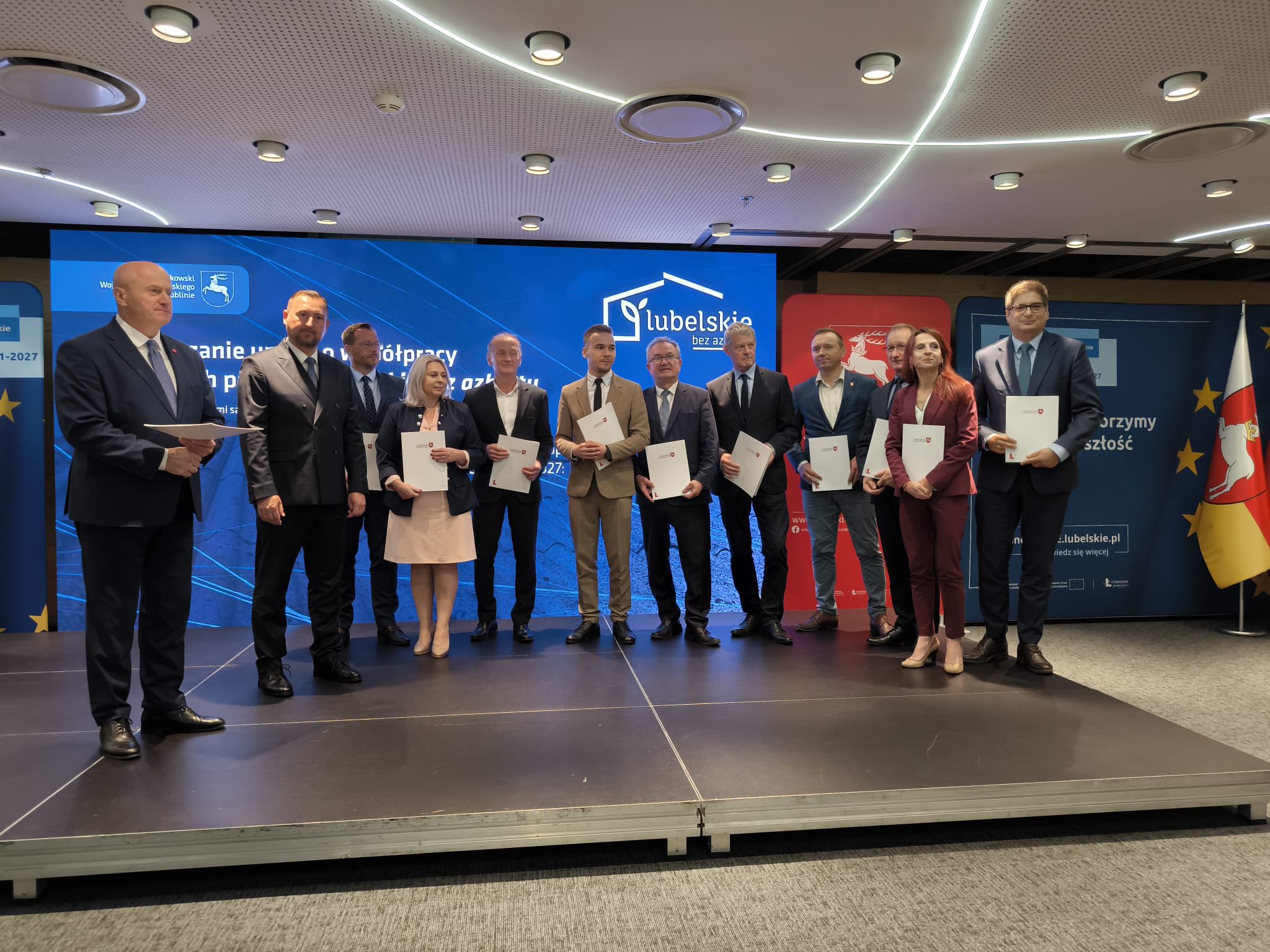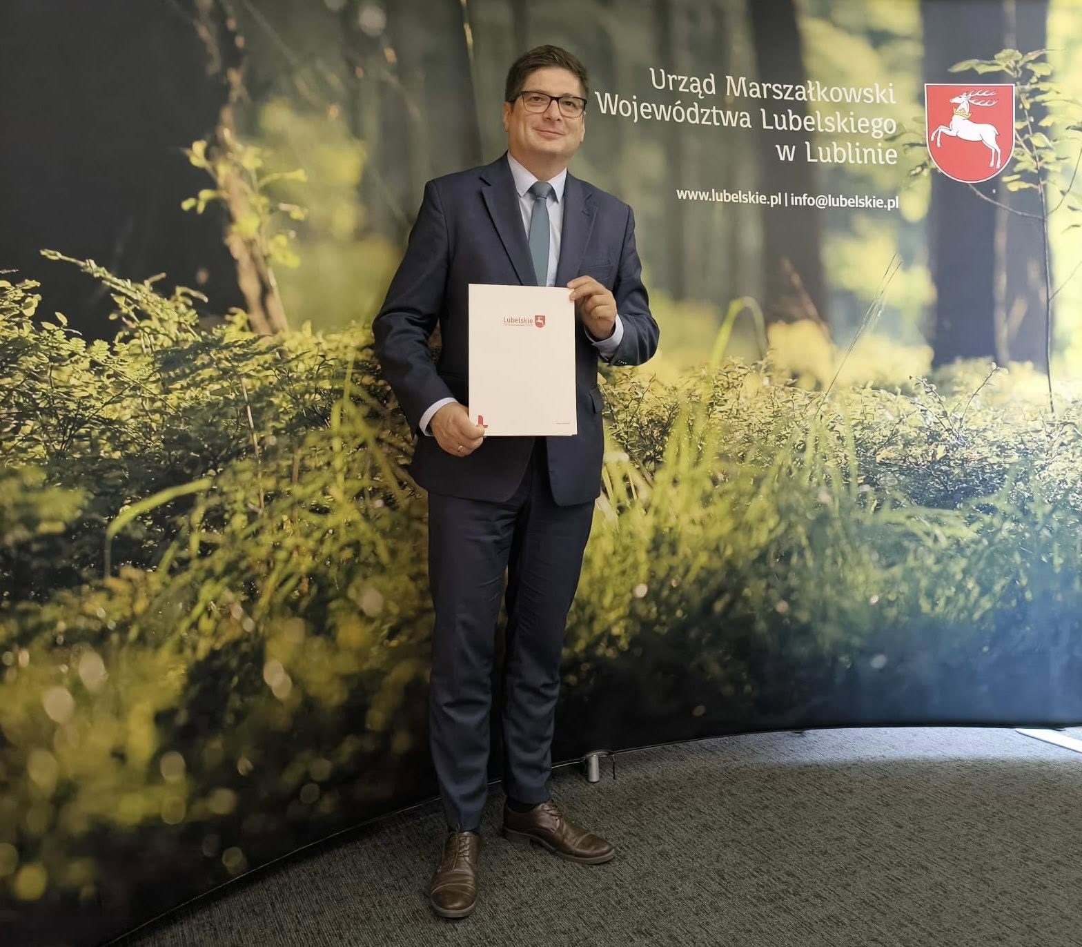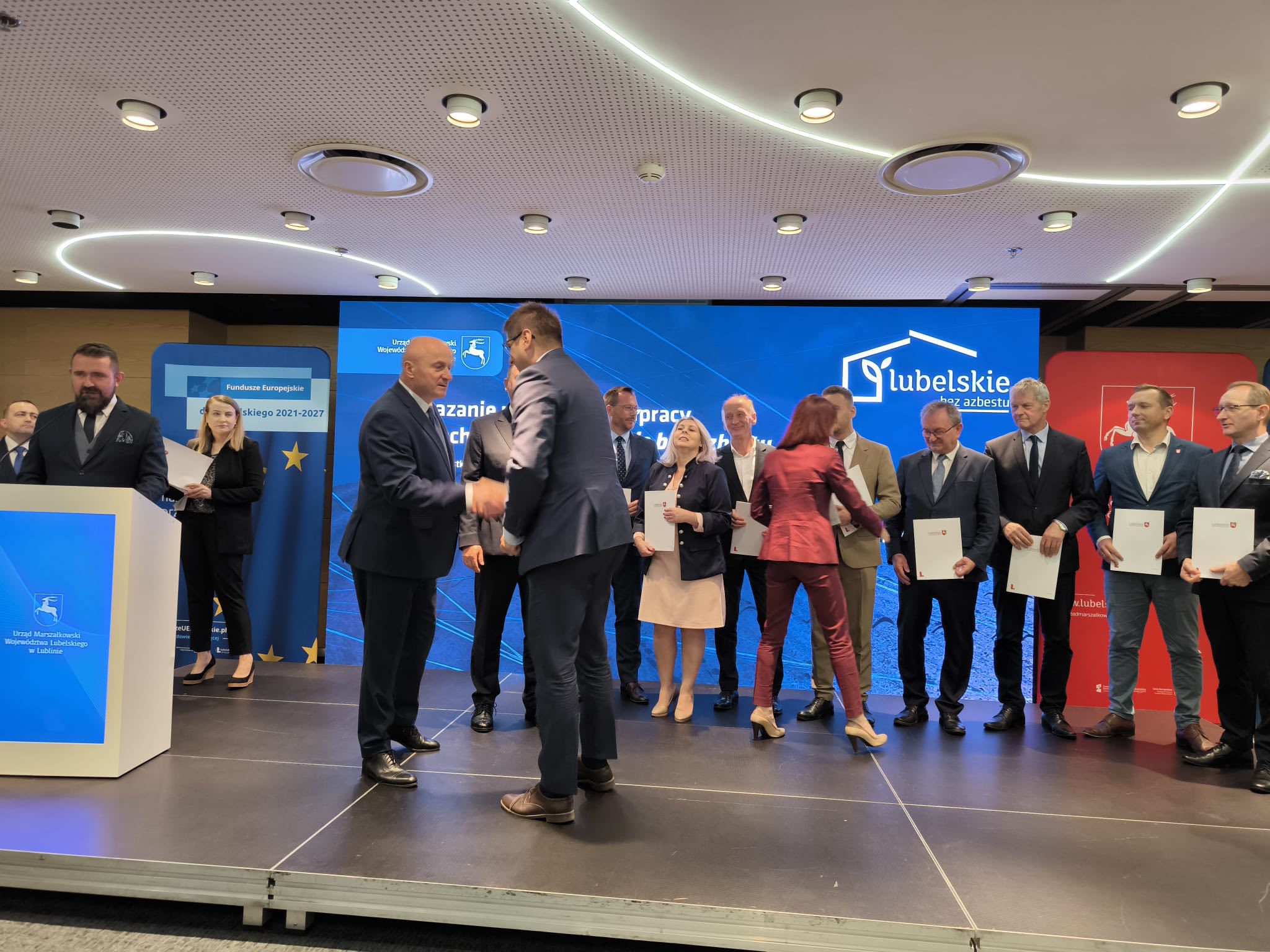 Pan Bartosz Dąbrowski - Wójt Gminy Niedrzwica Duża oraz Pan Janusz Dumin - Skarbnik Gminy podpisali dziś w Urzędzie Marszałkowskim Województwa Lubelskiego umowę o współpracy przy realizacji projektu „Lubelskie bez azbestu”.