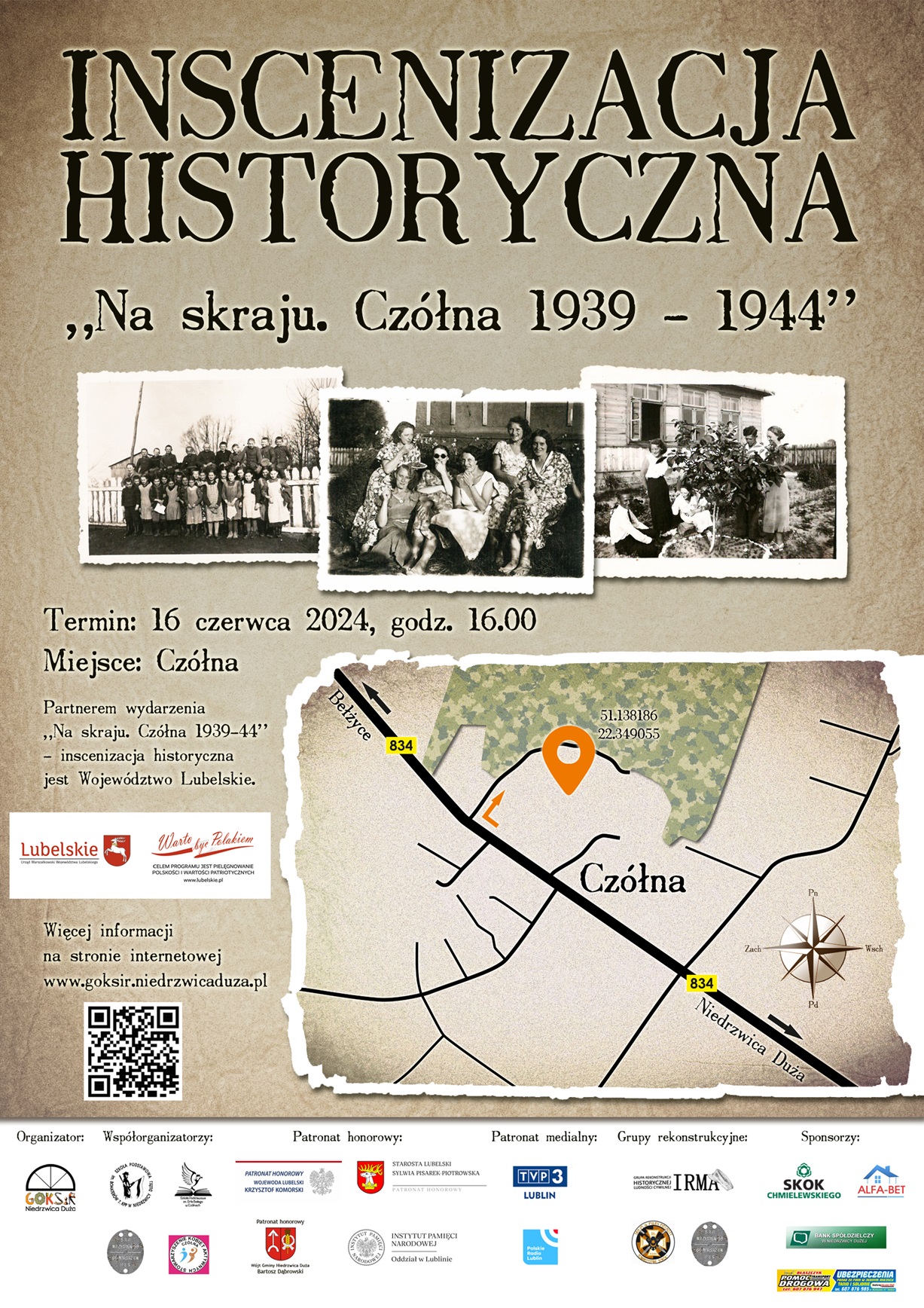 inscenizacja historyczna "Na skraju. Czółna 1939-1944" 16 czerwca (niedziela), godz. 16.00, Czółna (mapka z zaznaczonym miejscem - na plakacie) - O INSCENIZACJI