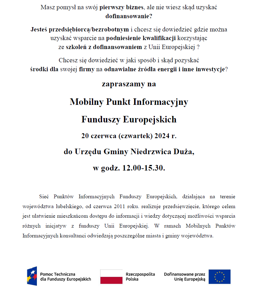 Mobilny Punkt Informacyjny Funduszy Europejskich - dn. 20.06.2024 r.