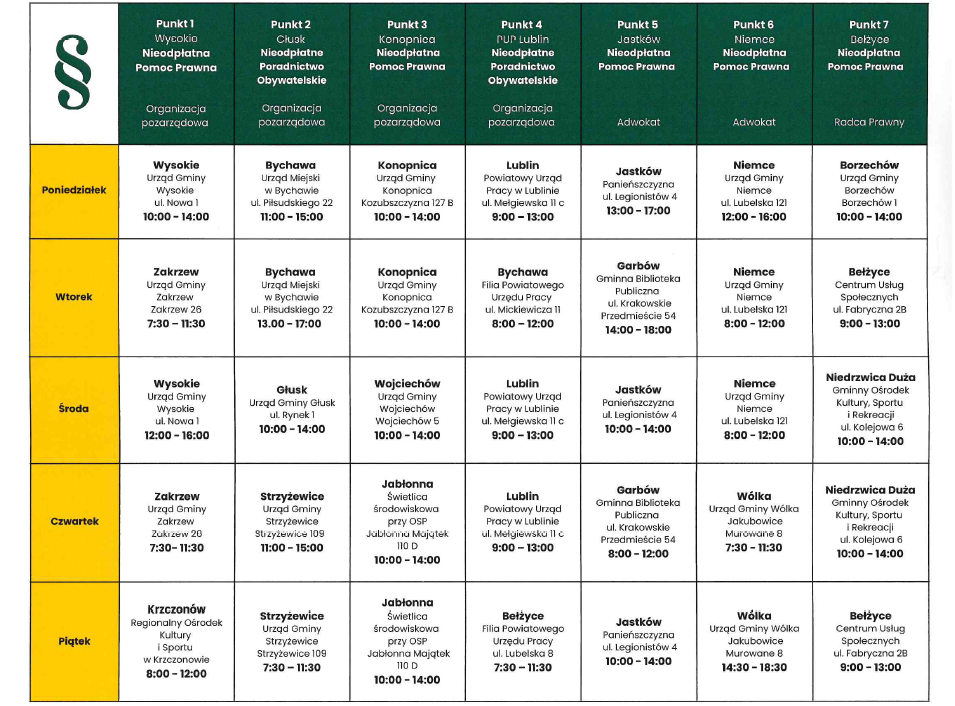 Harmonogram pracy punktów nieodpłatnej pomocy prawnejArchiwum