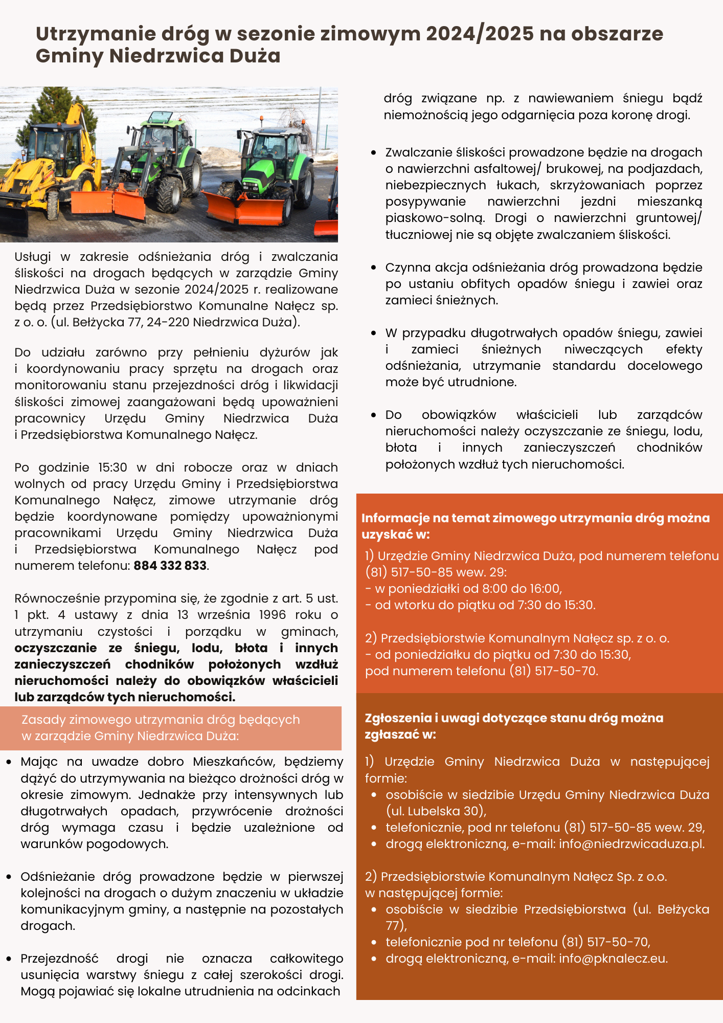 Utrzymanie dróg w sezonie zimowym 2024/2025 na obszarze Gminy Niedrzwica DużaArchiwum
