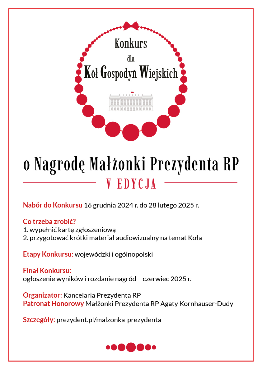 V Edycja Konkursu dla Kół Gospodyń Wiejskich o Nagrodę Małżonki Prezydenta RP