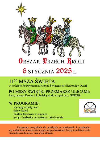6 stycznia, po raz pierwszy w Niedrzwicy Dużej odbędzie się Orszak Trzech Króli.