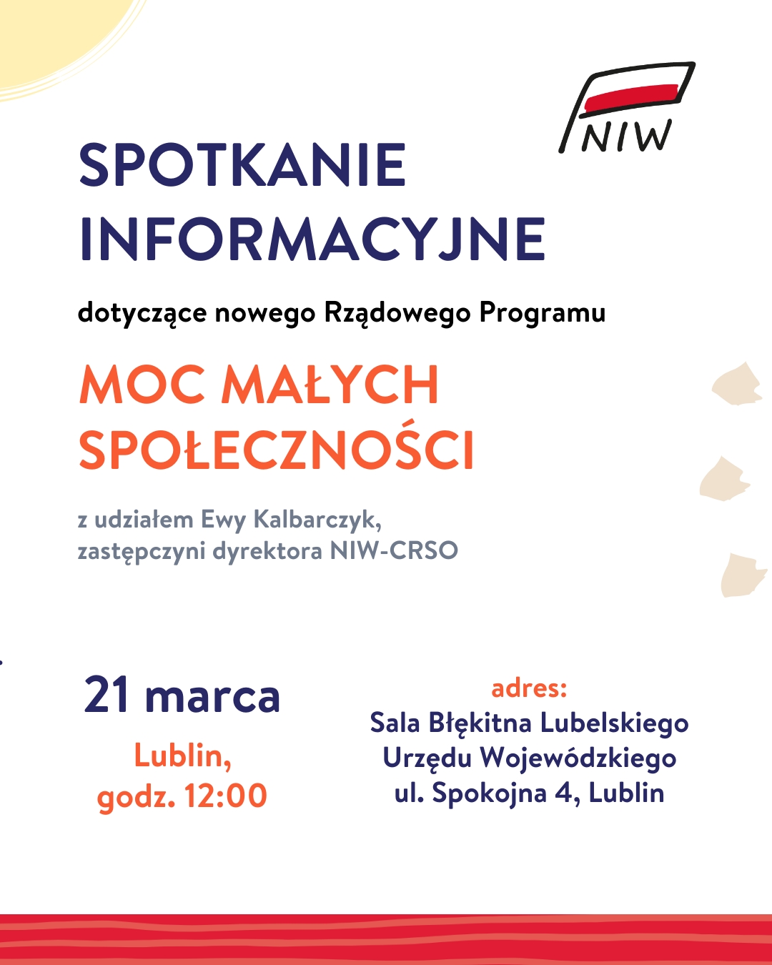 W dniu 21 marca o godz. 12:00 w Sali Błękitnej Lubelskiego Urzędu Wojewódzkiego (ul. Spokojna 4, Lublin) odbędzie się spotkanie informacyjne dotyczące nowego Rządowego Programu „Moc Małych Społeczności”.