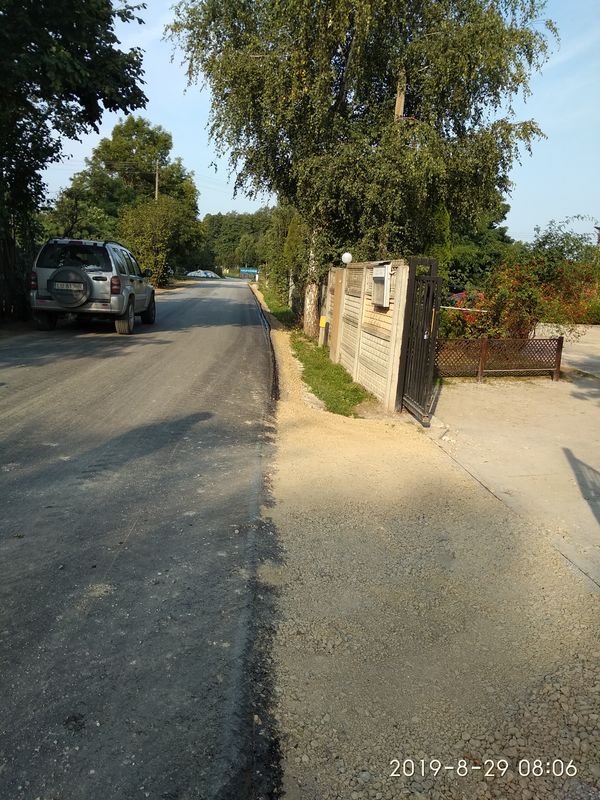 Przebudowę drogi wewnętrznej wraz z włączeniem do drogi krajowej dokonano na odcinku długości 260 mb. Przebudowywana droga posiada jezdnię o szerokości 4,5 m. Pobocza obustronnie utwardzone kruszywem łamanym o gr 15 cm szerokości 0,75 m. Nawierzchnię jezdni wykonano jako: warstwa ścieralna o grubości 4 cm z betonu asfaltowego - warstwa wiążąca o grubości 4 cm z betonu asfaltowego. Zjazd z drogi krajowej wykonano o szerokości jezdni 5,0 m. Konstrukcję nawierzchni zjazdu wykonano z kostki betonowej gr. 8,0 cm. Wprowadzono pionowe oznakowanie w postaci znaków B33, A 30 z tabl. T oraz poziomego na włączeniu do drogi krajowej w postaci linii osiowej P-1e i krawędziowej P-7c.